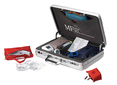 Véritable pharmacie mobile, cette valise contient tous les médicaments de base ainsi que ceux requis par l’état de santé du patient. La valise MFO est également dotée en option d’un équipement de pointe en télémédecine permettant de transmettre à MFO les paramètres vitaux et l’électrocardiogramme du patient.